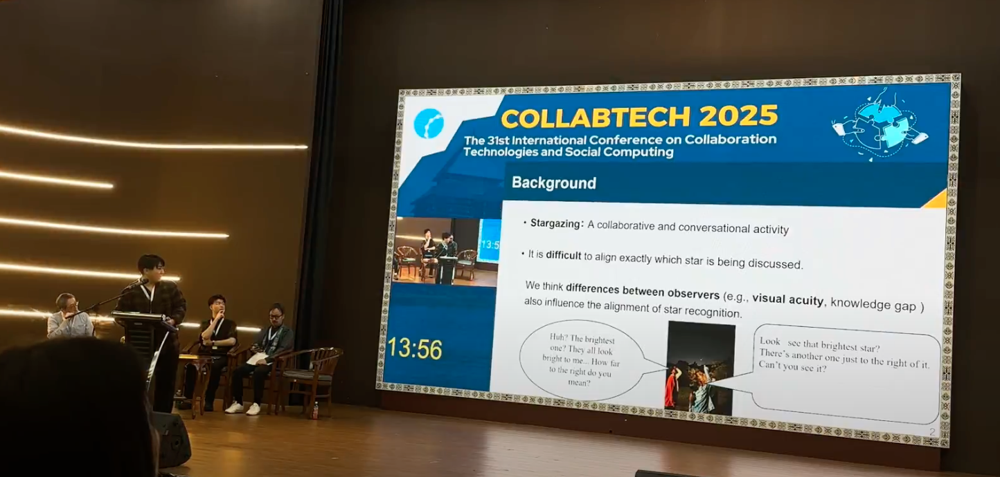 本研究では視力差に着目して会話実験を行いましたが、今後は知識差が星座の捉え方や説明方略に与える影響についても検討したいと考えています。さらに、本研究で用いた会話指標を手がかりに、見ている星のズレを会話から推定・検出する手法をより具体化し、その有効性の検証を進めたいです。
