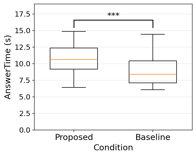 一方で,解答時間は提案手法の方が長くなりました.これは,パレットをかざす操作の慣れなさや操作性といった,提案手法への習熟度の低さが表れたと考えられます.