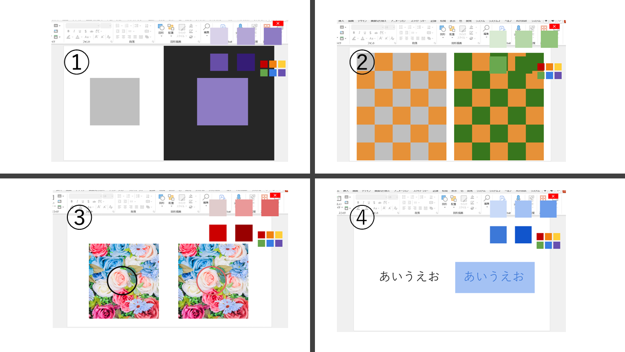 たとえば,黒いパレット上で選んだ色を白いキャンバス上に塗ると思ったより色が暗かった,ということがあります.