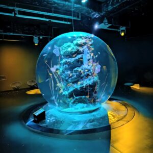 また、学会前には神戸を観光し、港がとても開放的で歩いているだけで気持ちよかったです。港の近くの水族館にも行き、みんなで楽しい時間を過ごしました(下の写真のようにアート寄りの展示でした)。