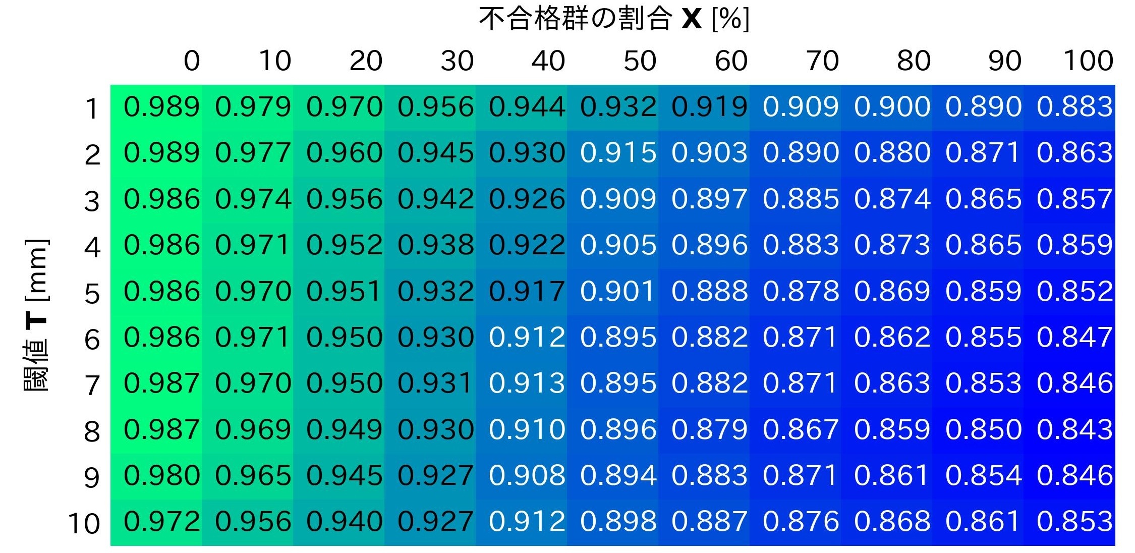 また、不合格群と判断する基準(閾値)を変化させる検証も行いました。今回はサイズ調整タスクの誤差が小さいほど成績が良いとしているため、ある閾値を超えた誤差を示した参加者は不合格群に分類されるようになっています。