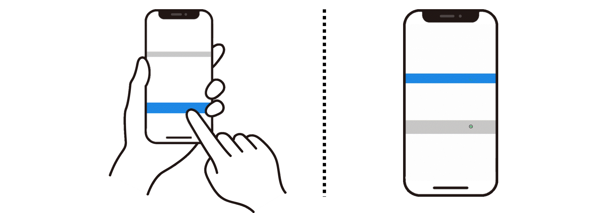 次に、主タスクは下図のようにターゲット(水色のバー)をタップするポインティングタスクとしました。このタスクはフィッツの法則として知られているもので、ターゲットをクリックするまでの時間(操作時間)とミスの割合(エラー率)について評価しました。