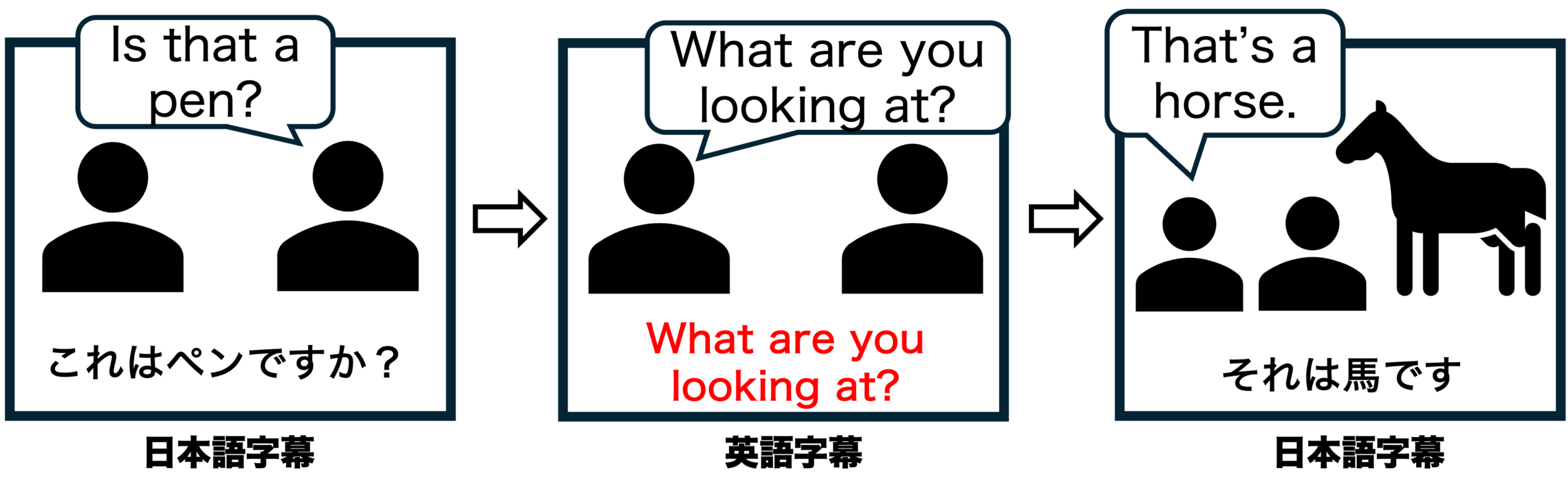 音声が英語で字幕が日本語の場合,映像ではなく字幕ばかり見てしまいませんか?また,字幕と音声のどちらも英語の場合,そもそもある以上英語が得意でないと内容を理解できません.