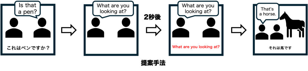 これまでの研究では,字幕が音声と同時に提示されるため,音声を聞き取る前に字幕を読むことができてしまい,リスニングへの学習効果を十分に高めることができなかった可能性が考えられます.そこで,今回の研究ではこれまでの切り替える手法を改良し,英語字幕に切り替わる際に遅延をかける手法を提案しました.