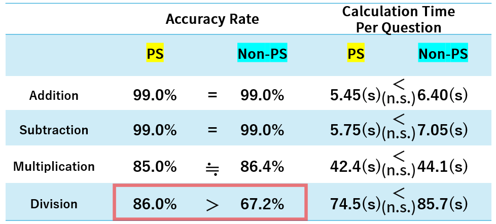 その結果、割り算の正答率において、筆圧あり条件と筆圧なし条件の差が示されました。