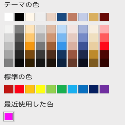 また、画像に示す色選択インタフェースでは、「テーマの色」や「最近使用した色」のような色の候補を示す大きさは色選択インタフェースそのものの面積よりもかなり小さくなっています。この小ささが色選択を阻害しているのではないかという可能性が示されました。